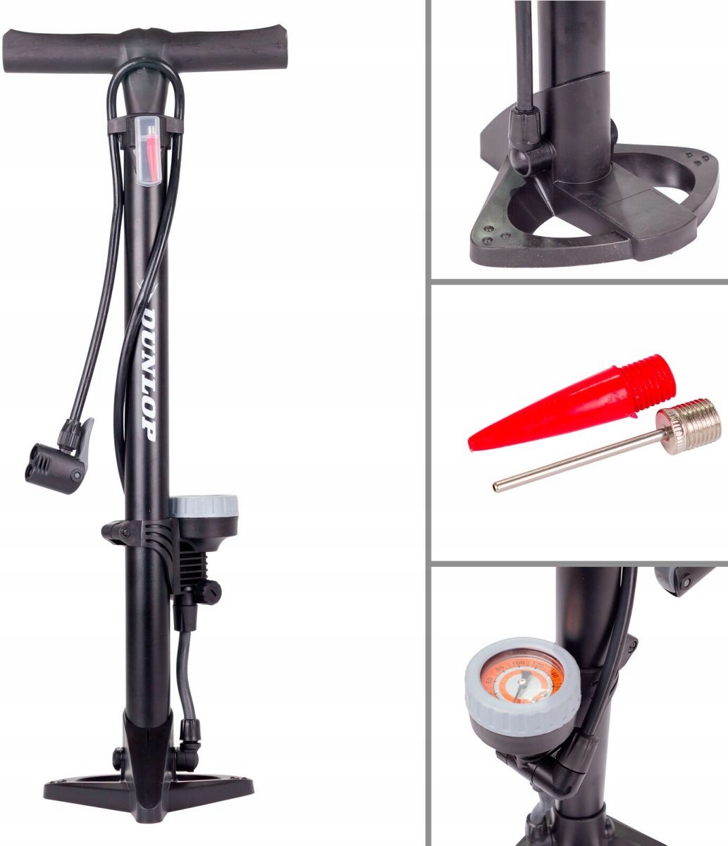 Переконайтесь, що ваші шини завжди мають достатній тиск завдяки підлоговому насосу відомого бренду DUNLOP.
