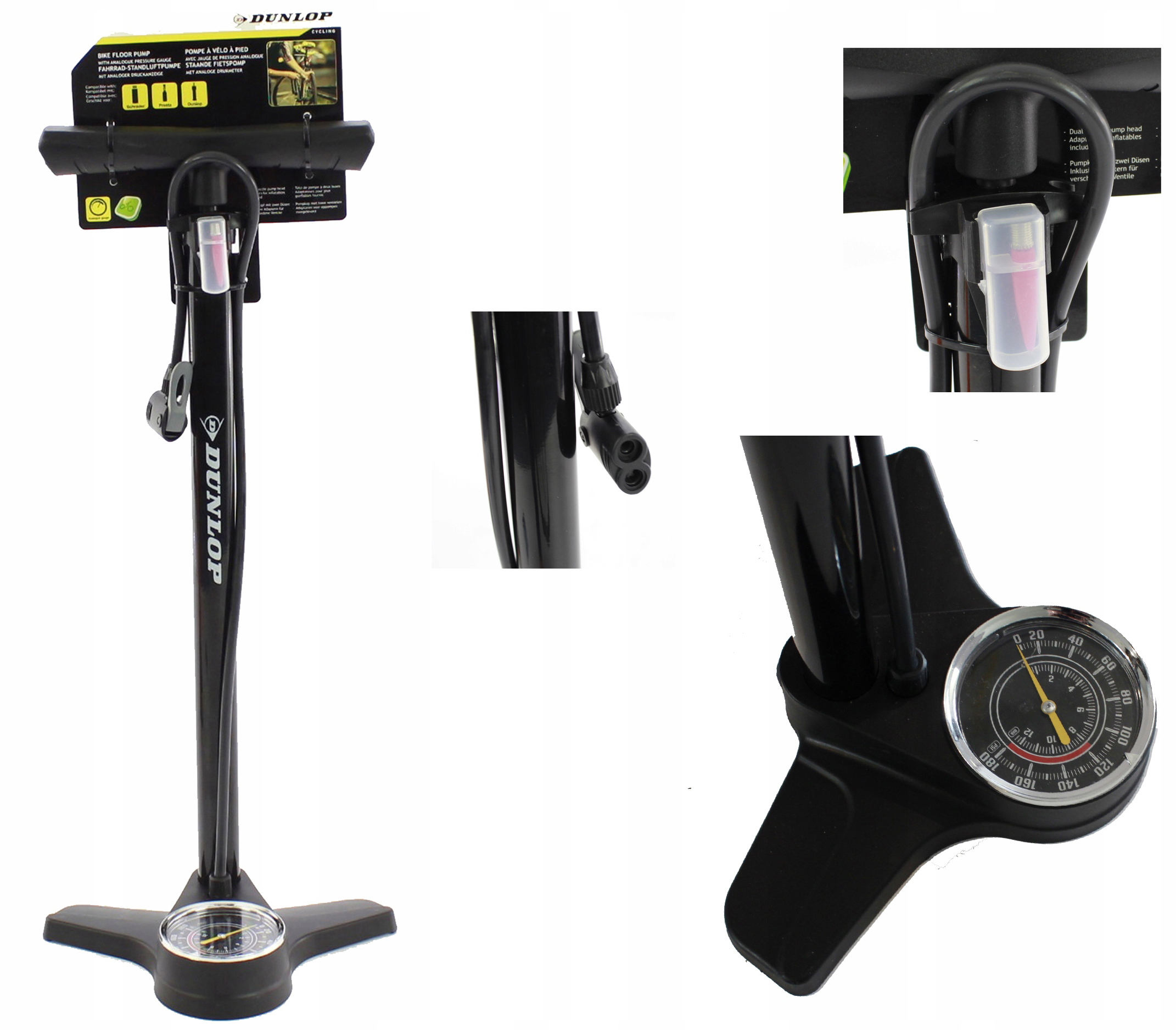 Подбайте про те, щоб ваші шини завжди мали достатній тиск завдяки підлоговому насосу відомого бренду DUNLOP.