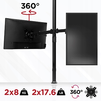 Duronic DMT152 - це ручка, призначена для монтажу двох моніторів, використовуючи рухомі головки з двома плечем та затискачами. Це дозволяє збільшити ергономіку роботи - більше місця на столі та кращий кут зору (без розбирання). Система кріплення ідеально підходить для графічних дизайнерів, дизайнерів та гравців, а також для повсякденної офісної роботи.
