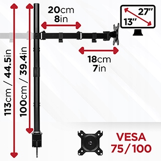 Голова може тримати монітор або невеликий телевізор з максимальною вагою до 8 кг від VESA 75 або 100.
