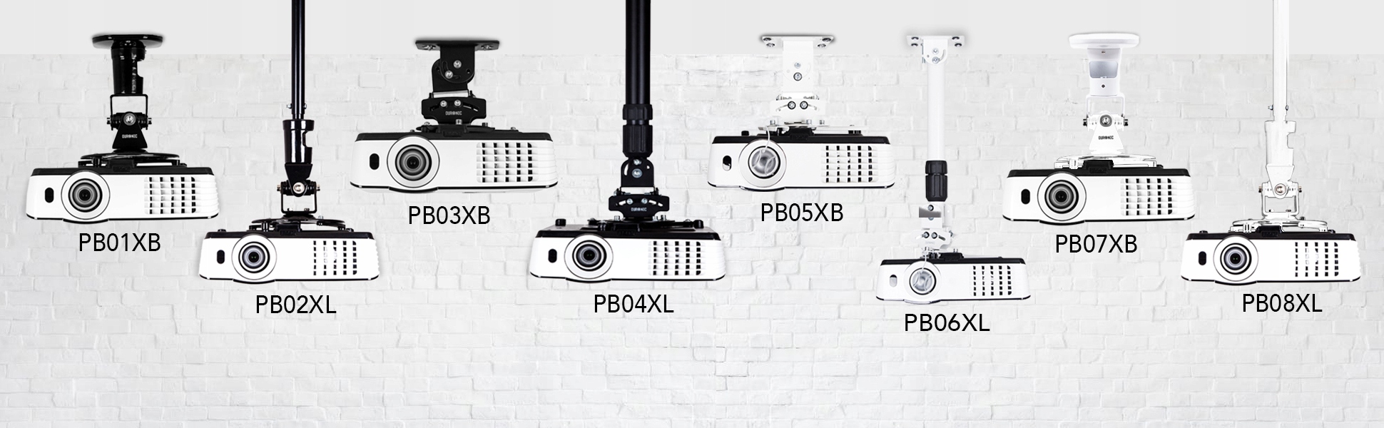 - Наші моделі тримачів сумісні майже з усіма проекторами, доступними на ринку. За винятком дуже специфічних і рідкісних проекторів, які не допускають прямого кріплення до стелі чи стіни та потребують придбання додаткового адаптера, доступного на інших аукціонах. Наші кронштейни дозволяють встановлювати проектори з 3 або 4 монтажними отворами.