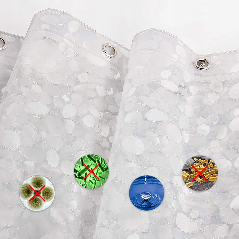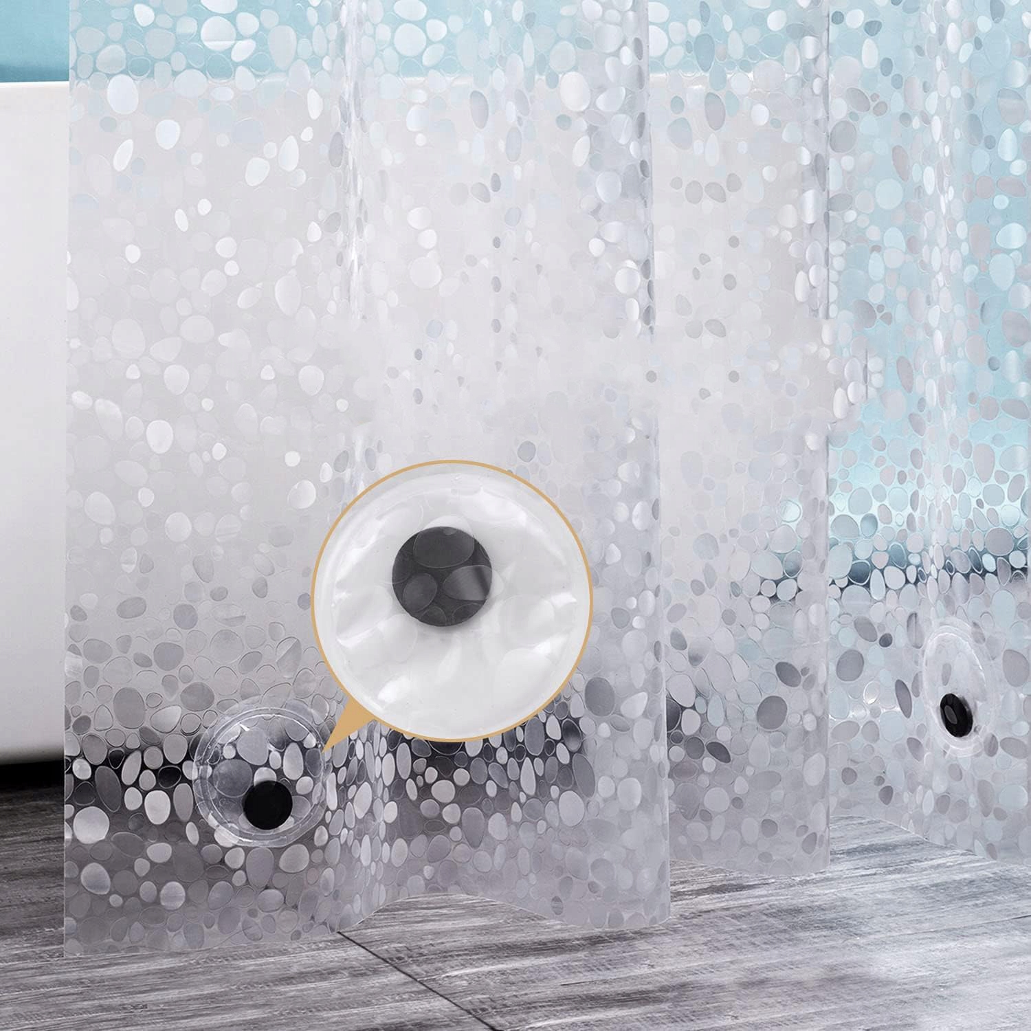 🛁 коригувальна: Ця завіса для душу оснащена 12 очима з нержавіючої металу та відповідними пластиковими кільцями, завдяки яким вона підходить для простих або вигнутих душових смуг і усуває шум, що виникає внаслідок ковзання. її. 3 магніти внизу полегшують складання. Сучасний 3D -дизайн, напівпрозорий шаблон бруківки, що забезпечують конфіденційність. Це чудовий вибір для сімей чи готелів.