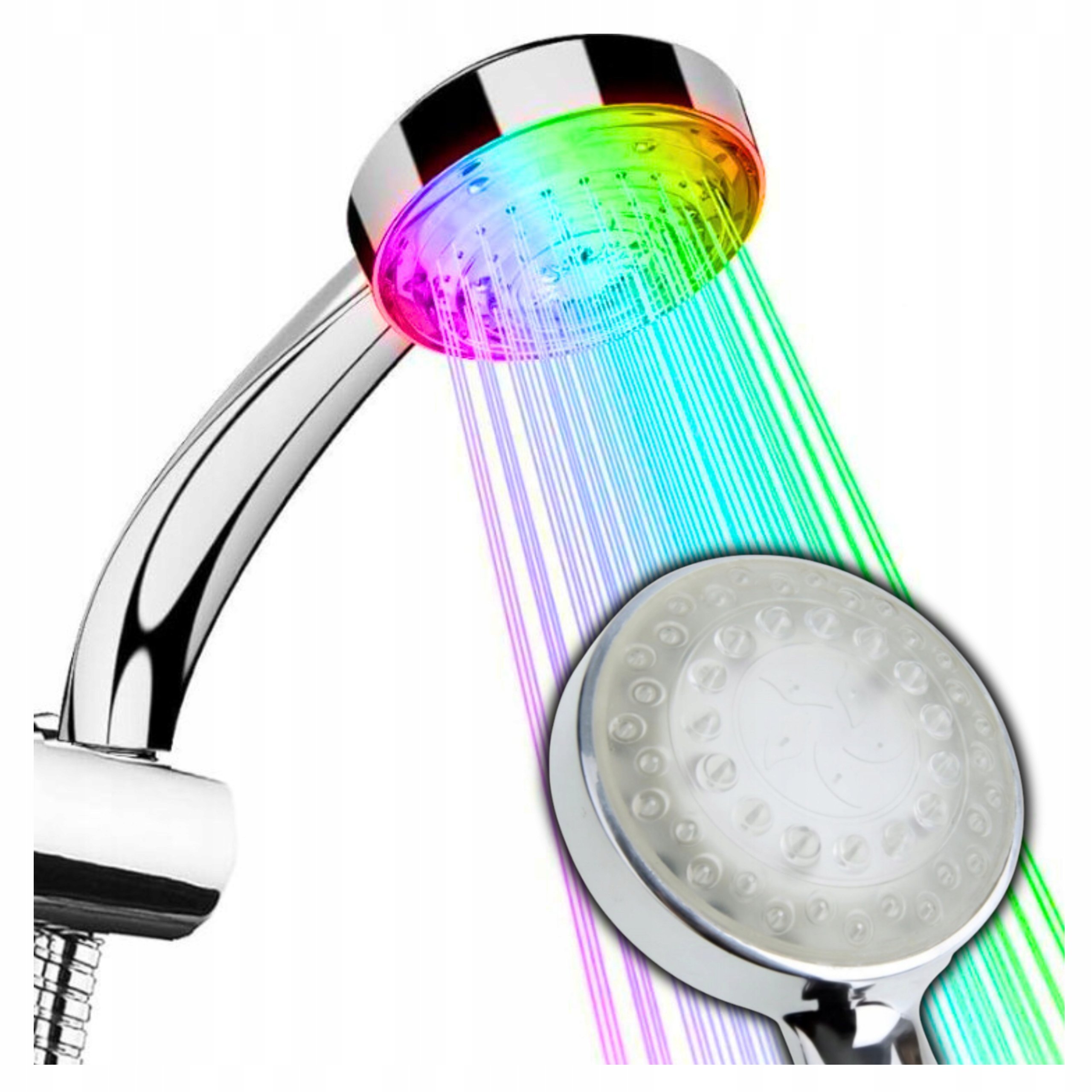 Хороша душова лійка, яка світиться різними кольорами завдяки світлодіодним діодам, які реагують на струмінь води.