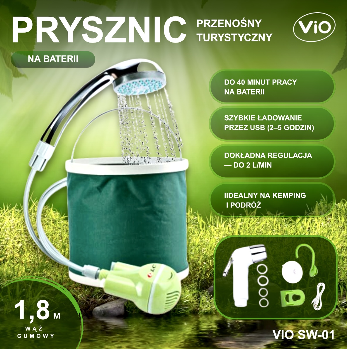ДУШ ТУРИСТИЧНИЙ КЕМПІНГОВИЙ ViO SW-01 З ДУШОВОЮ НАСАДКОЮ 2200мА 2Л/м