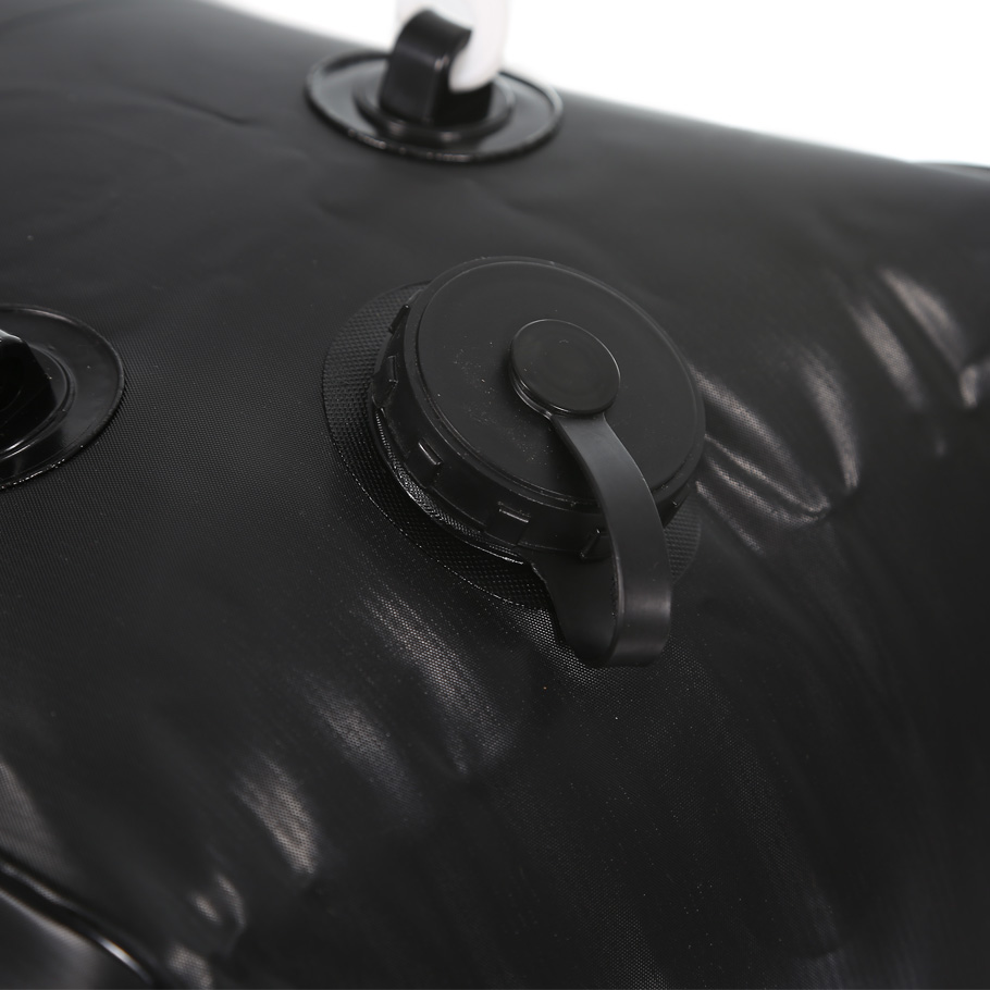 Чорний колір і особлива структура матеріалу притягує сонячне світло і гарантує швидкий нагрів рідини. Душ нагріває воду до оптимальної температури 27°C за годину. Через три години вона досягає температури приблизно 40°C, максимальна температура досягає 50°C. Гнучкий шланг з душовою насадкою і зручним клапаном. Шланг з прозорої гуми дозволяє візуально контролювати потік і оцінювати чистоту води. Закручується наповнювач з елементом для запобігання втрати кришки. Великий діаметр входу сприяє швидкому наповненню, можливість додавання води без необхідності демонтажу душу. Товстий шнур, довжиною близько 2 м, оснащений міцними гачками. Система самовирівнювання гачків полегшує підвішування. Душ упакований в естетичну картонну коробку. Ідеально підходить для тренувальних майданчиків, кемпінгу чи відпочинку в наметах.