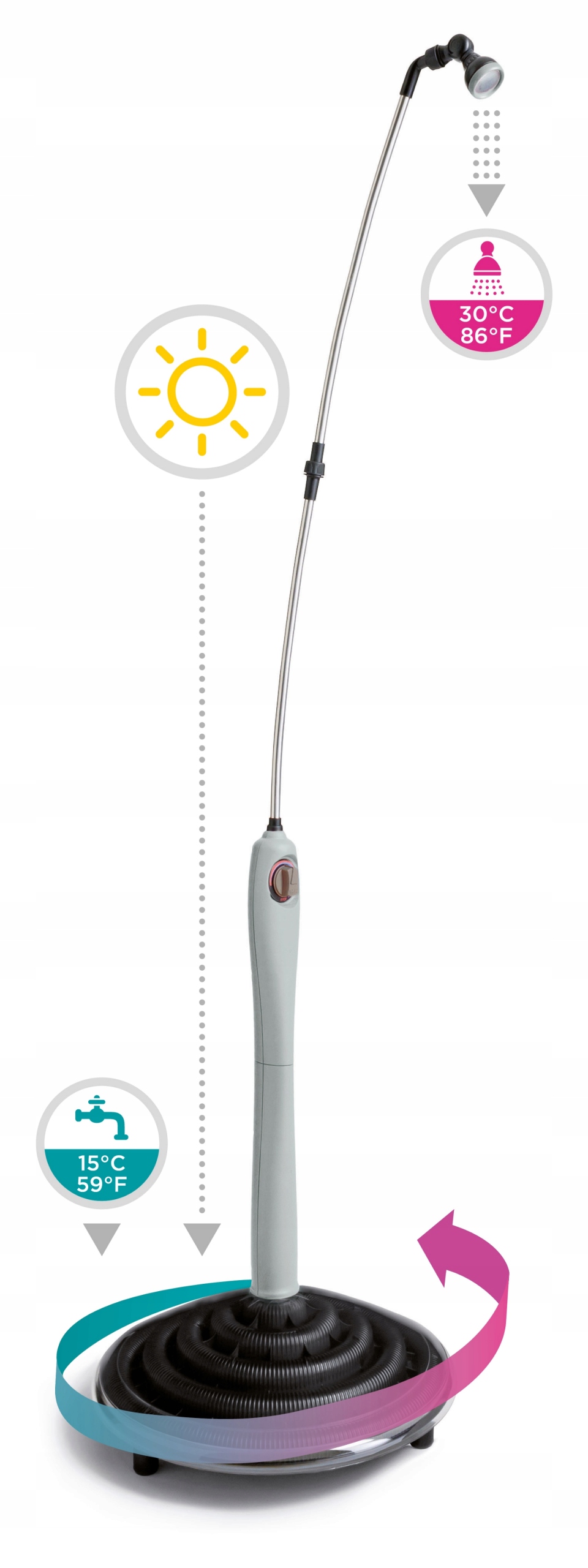 Садовий душ на сонячних батареях працює на основі сонячної енергії. Що це означає на практиці? Вода в душі буде нагріватися енергією сонця. Вода нагрівається в змійовику, розташованому біля основи душа. Час нагріву води до 60 градусів за Цельсієм становить близько 2 годин. Підігріта вода рівномірно змішується з холодною, коли ви відкриваєте кран, і душ можна приймати з інтервалом 5-6 хвилин. Ми пропонуємо кілька моделей душів із фіксованою або знімною душовою лійкою, регулюванням кута нахилу та в різних кольорах. Окрім переваг доступу до душу у власному саду та чудової можливості провести час на свіжому повітрі та розважитися, варто також звернути увагу на екологічний аспект сонячних садових душів. Інший тип душа потребує установки з доступом до гарячої води або джерела енергії, щоб мати можливість нагрівати воду, що використовується на постійній основі. Сонячні моделі використовують відновлювану енергію, тобто сонячну енергію, і тому не створюють забруднення або додаткових витрат і споживання електроенергії. Тому комфортний душ на відкритому повітрі – це рішення, доступне не лише в кемпінгах чи спа-центрах – кожен із наших клієнтів може насолоджуватися цією зручністю у власному саду!