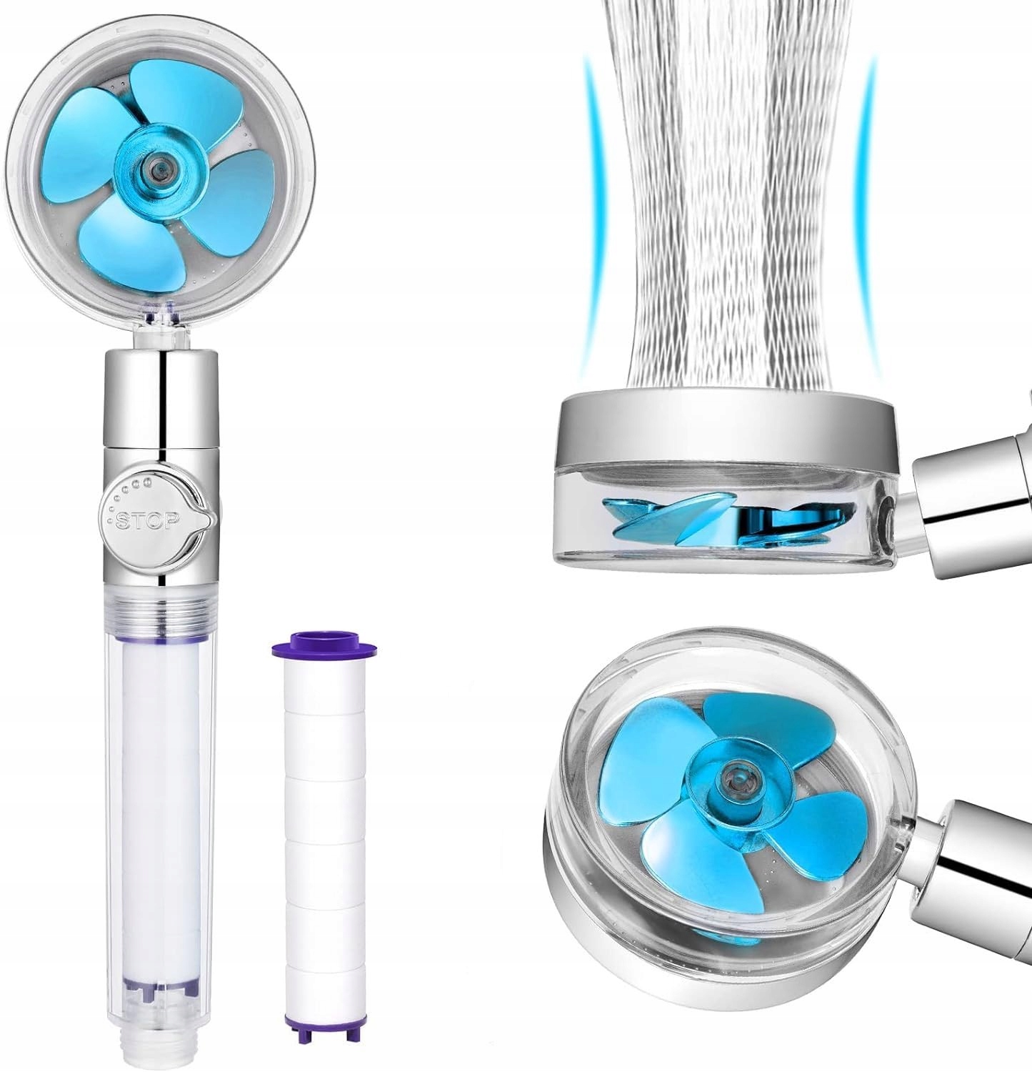 - Унікальна конструкція з пропелерним приводом: душова лійка високого тиску має три режими напору води: високий, середній і низький, завдяки чому ви можете регулювати тиск води для ваших потреб. Завдяки потужному турбо-тиску він може допомогти вам швидко усунути залишки волосся та мильні бульбашки.