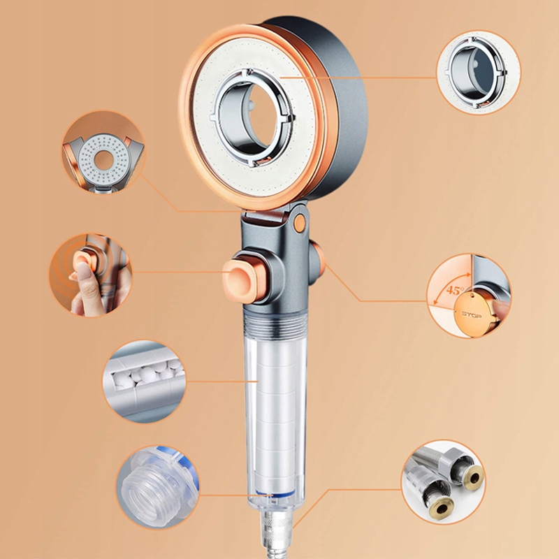 💦💦 Завдяки застосуванню принципу турбонаддуву, подвійне верхнє верхнє місце може досягти 200%. Завдяки будівництву мікропорами діаметр водної розетки лише 0,4 мм , вода плавно тече, а економія води досягає вище. 20%від масажу та спа -центру. З внутрішній реципієнт має запобігання структурі витоку , що запобігає розтріскуванню змії.