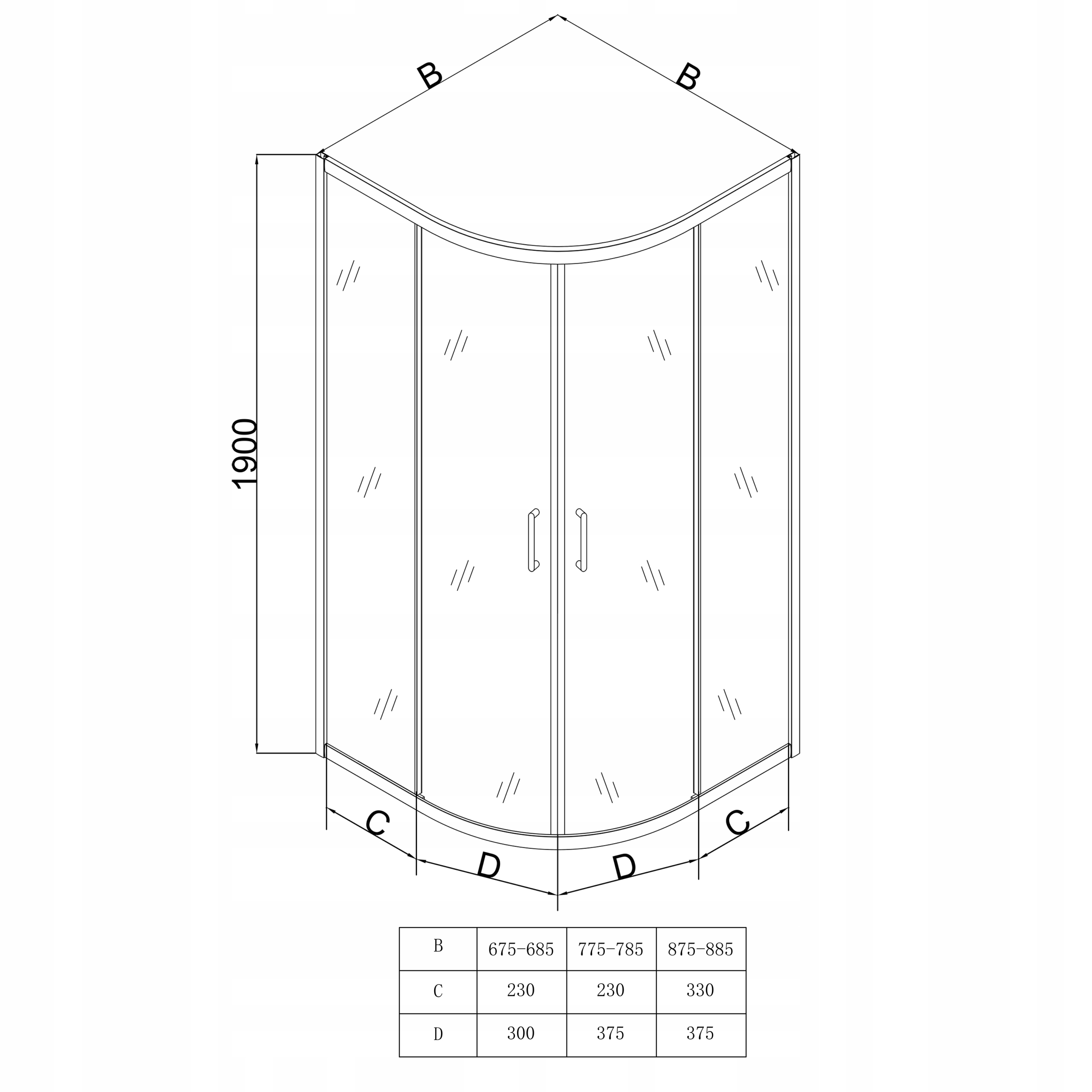 Завдяки можливості установки на душовий піддон, кабіна має менші розміри, ніж наведений розмір моделі, щоб правильно розташувати її на піддон.