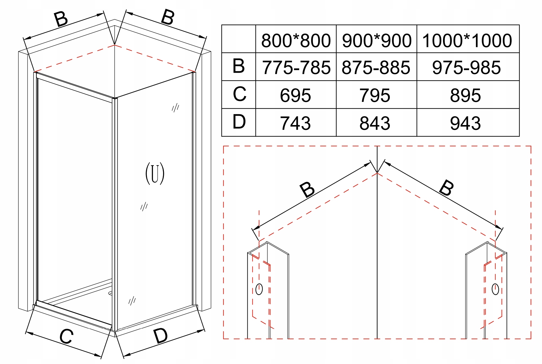 Завдяки можливості установки на душовий піддон, кабіна має менші розміри, ніж наведений розмір моделі, щоб правильно розташувати її на піддон.