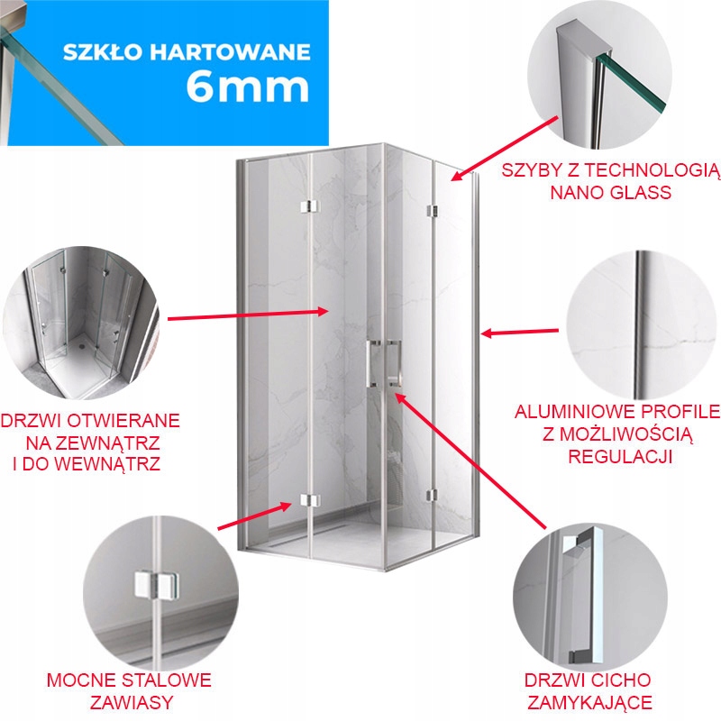 КВАДРАТНА ДУШОВА КАБІНА KZ08C CHROME 90x90 CM