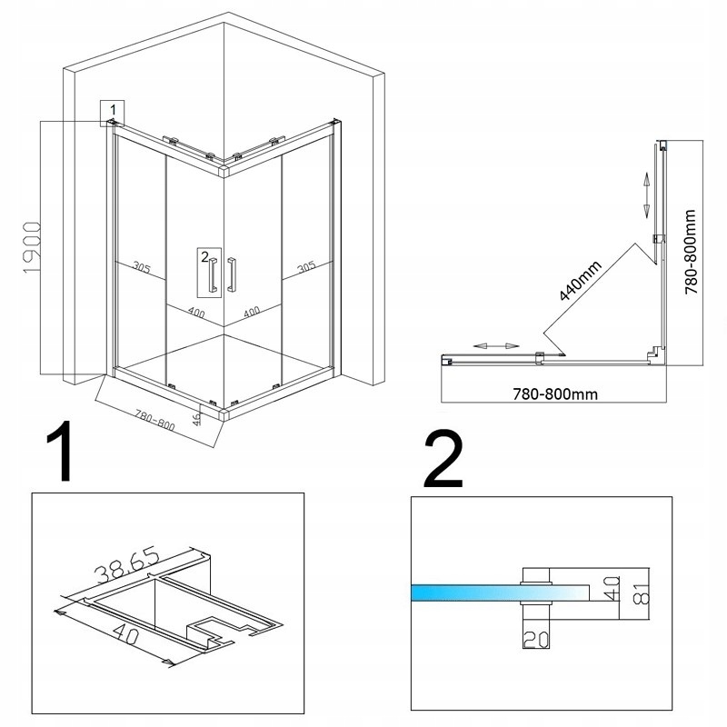 ✅ Розмір: 800x800x1900 мм * діапазон регулювання на профілях: 20 мм