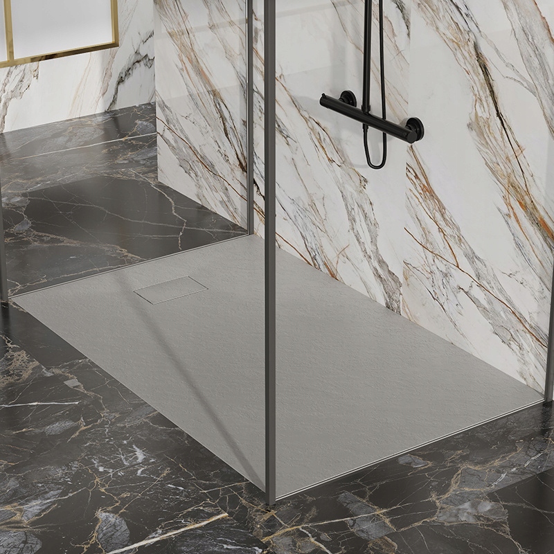 ✅ Структура, схожа на камінь: Натуральна поверхня душового піддону вносить унікальний характер в інтер’єр, який радує естетичністю та сучасністю приміщення.