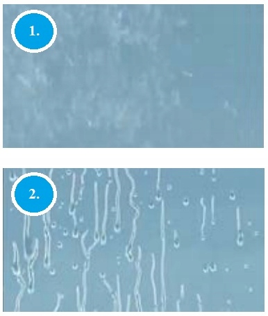 Завдяки своїм гідрофобним властивостям краплі води не затримуються на поверхні скла, вони просто стікають, не залишаючи відкладень.