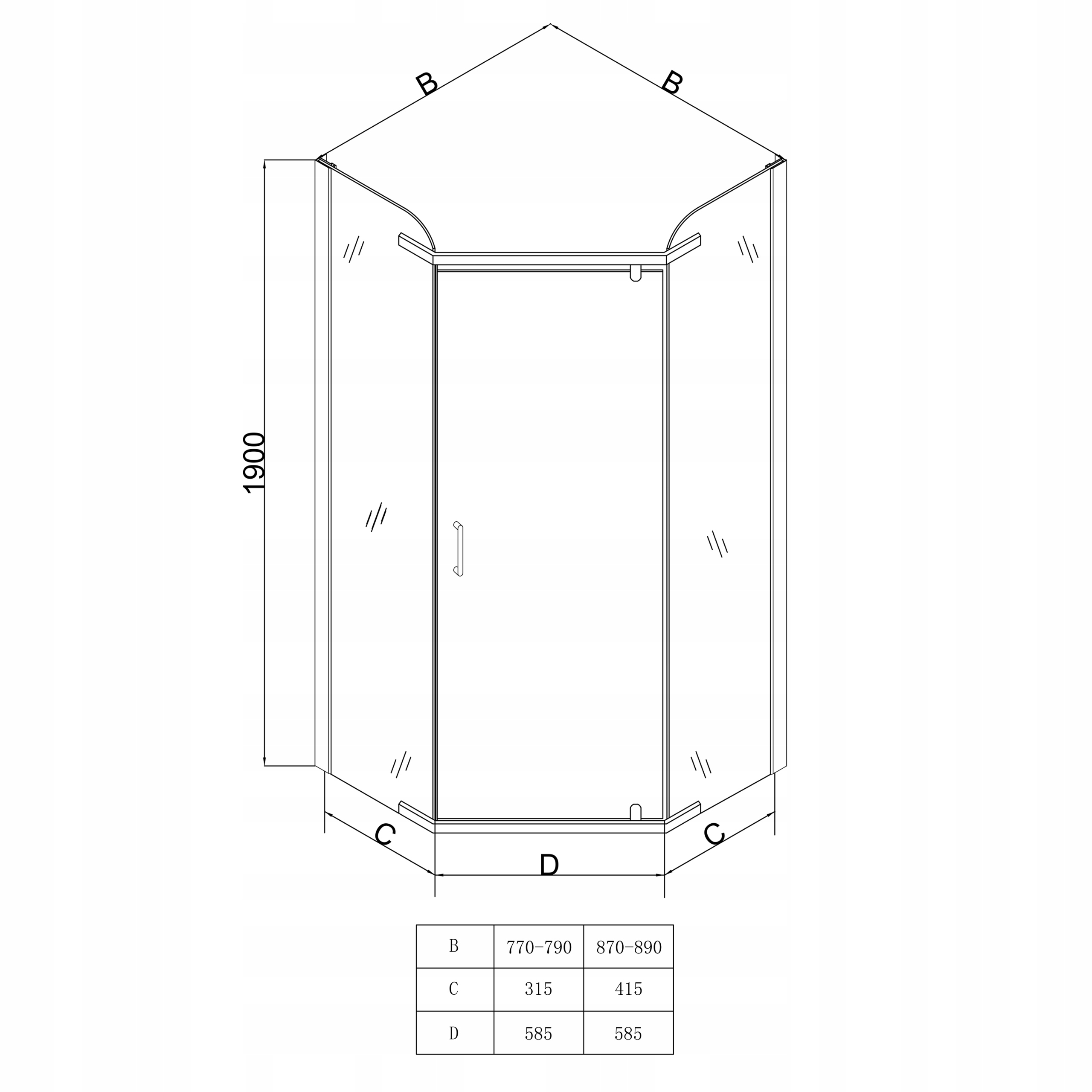 ДУШОВА КАБІНА НАХИЛНА П'ЯТИКУТНА КУТОВА 90х90 СМ ХРОМОВЕ СКЛО ESG