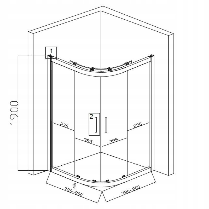 НАПІВКРУГЛА ДУШОВА КАБІНА З ПІДДОНОМ BS01B/SXL01B ЧОРНИЙ/ЧОРНИЙ 90x90 СМ