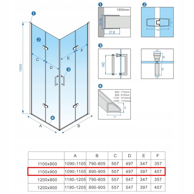 ДУШОВА КАБІНА ПРЯМОКУТНА KZ13B ХРОМ 110x90 СМ
