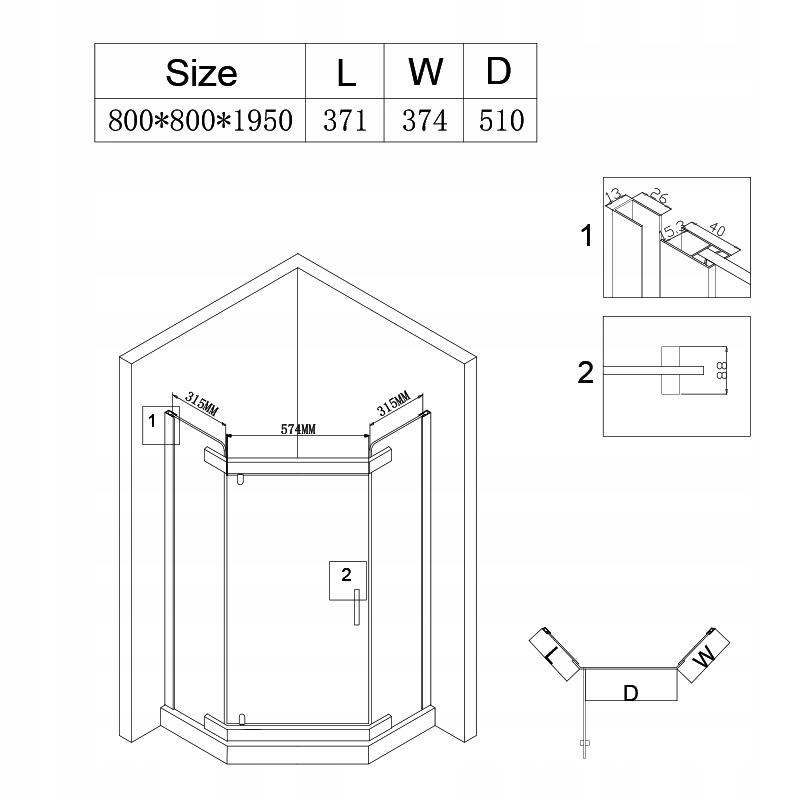 ДУШОВА КАБІНА П'ЯТИКУТНА KZ91A GOLD 80x80 СМ