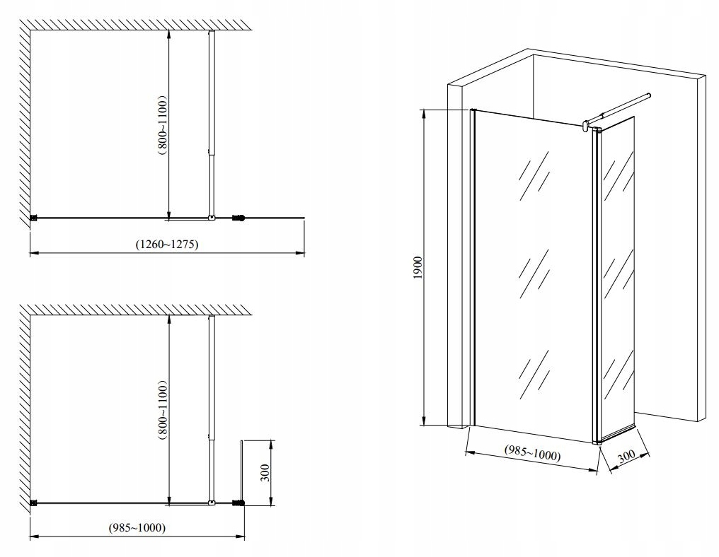 - розміри (Ш x В): 1000x1900 мм + 300x1900 мм, інші розміри відповідно до технічного креслення, що додається