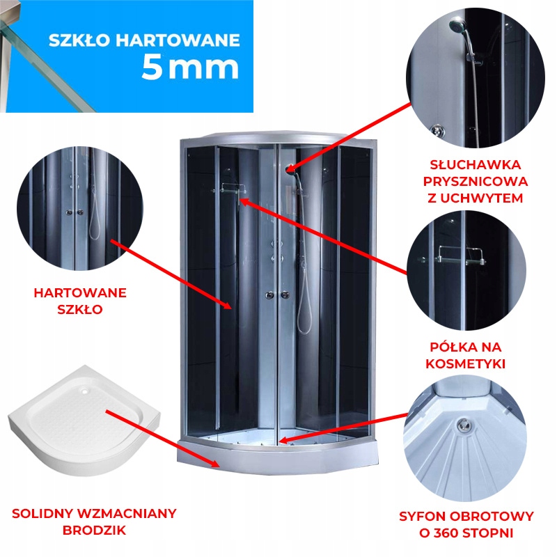 ДУШОВА КАБІНА З НАПІВКРУГЛИМ ПІДДОНОМ WSH302A ХРОМ 80х80 СМ