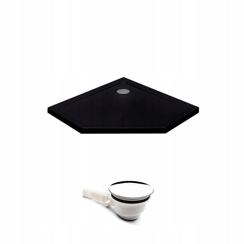 П'ятикутний душовий піддон 80x80 ST08A чорний чорний сифон 5 см плитка низький діамант