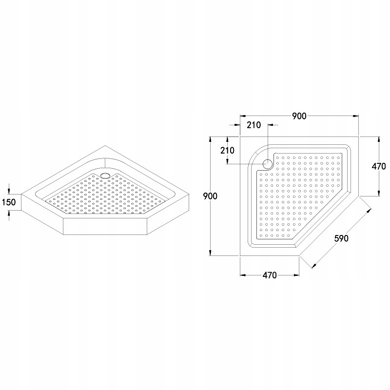 П'ятикутний піддон 90x90 SXL07B чорний + сифон