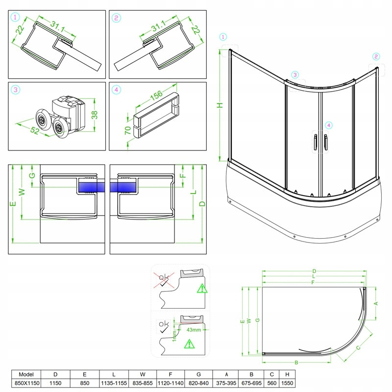 ✅ Функціональність та комфорт – кабіна має систему легкого відкривання дверей та магнітні ущільнювачі, що забезпечують герметичність. Душовий піддон оснащений протиковзкою поверхнею, що підвищує безпеку під час використання. Високі краї душового піддону ефективно запобігають витіканню води за його межі.