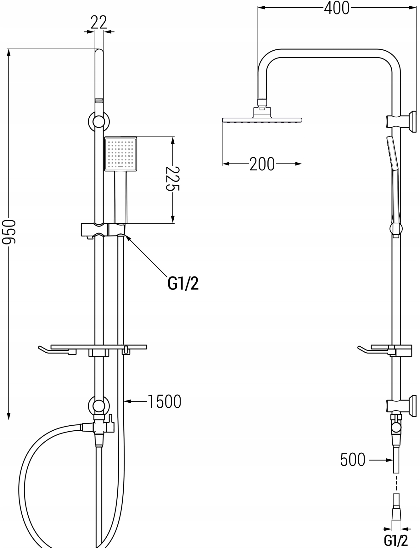 - розмір душу: 200x200 мм