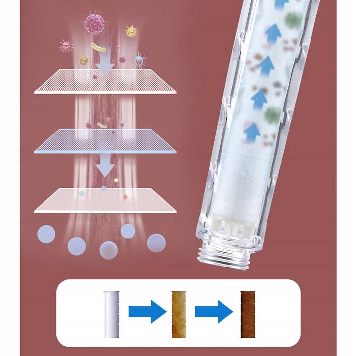 - Фільтр має властивості, які позитивно впливають на якість води, в тому числі за рахунок зниження рівня хлору, який негативно впливає на здоров’я людини, наприклад як подразнення очей, дихальної системи та слизової оболонки носа.