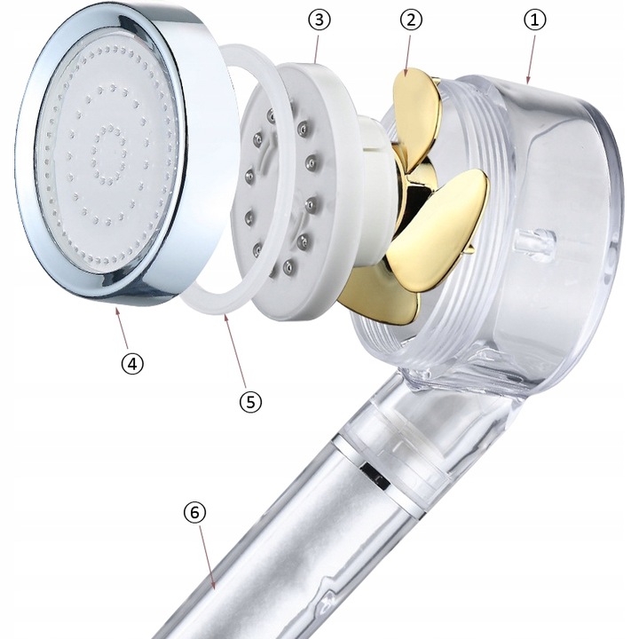 - Високоякісний матеріал ПК, висока твердість, теплоізоляція тощо. Лампа LED живиться самостійно від потоку води, немає необхідності використовувати зовнішнє джерело живлення.