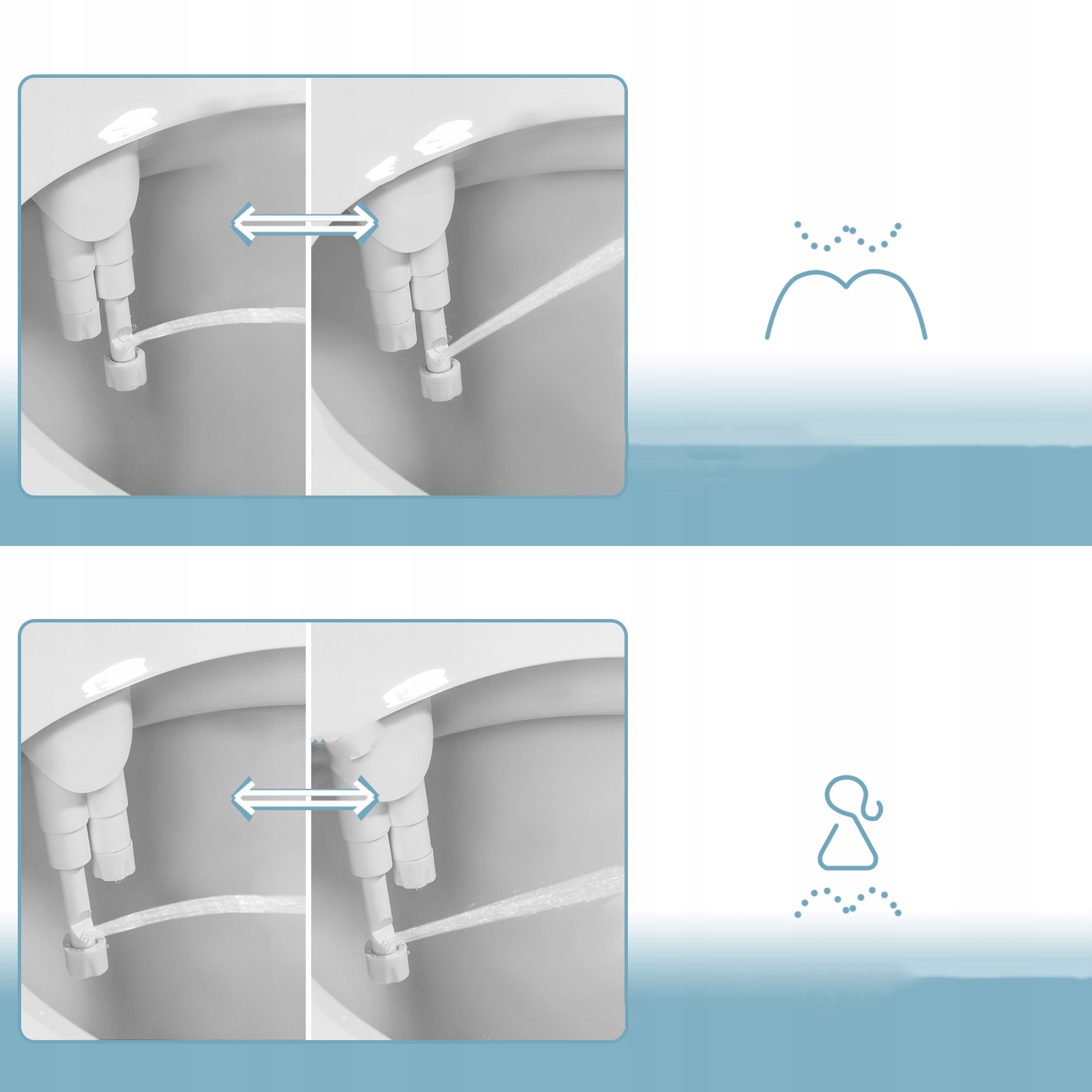 Регульований потік води — душ із стрибком, саме те, що вам потрібно. За допомогою ручки ви можете точно регулювати положення та силу струменя води, забезпечуючи приємну інтимну гігієну.