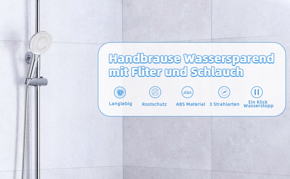 Ручка регулювання: ця душова лійка оснащена багатофункціональною ручкою регулювання, яка проста у використанні та дозволяє точно контролювати силу потоку води та вмикати/вимикати. Ручка виготовлена з нековзкого матеріалу, що дозволяє легко працювати навіть у вологому середовищі. Повертаючи або натискаючи, ви можете перемикатися від тонкого, ніжного потоку води до сильного бризок і навіть повністю закрити його, щоб задовольнити різні потреби в душі та особисті уподобання.