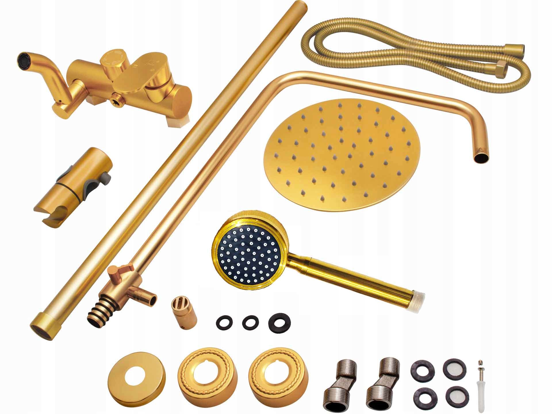 Регульований тропічний душ 160 - 190 см, алюміній, золото, з рухомим виливом, новий CE