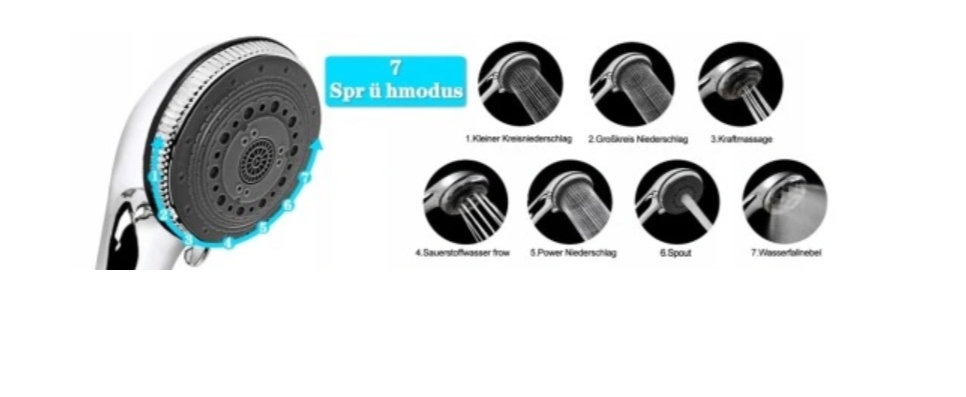 - ▶ 【Лійка для душу та набір шлангів】 вкл. Ручний душ, душовий шланг довжиною 1,5 м, сантехнік і 4 очисники для шлангів, 7 регульованих душових насадок для ванної кімнати підходять не лише для дорослих, але й для немовлят і домашніх тварин.