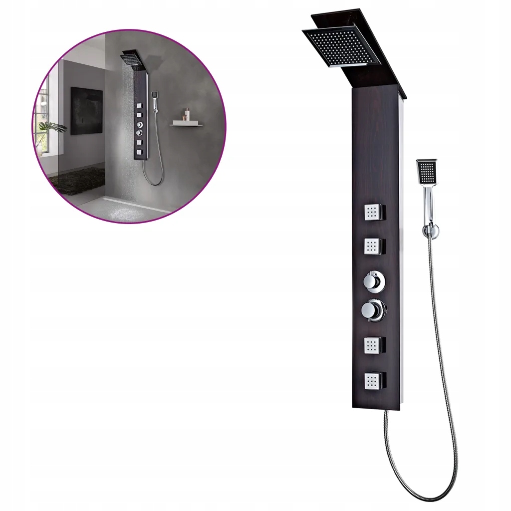 занурюйтесь під справді розслаблюючу душу і насолоджуйтесь сучасним стилем цієї прекрасної душової панелі! Модельований на дереві + хромовий пластик