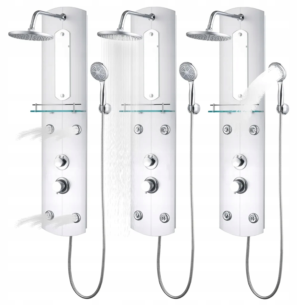 Основний елемент душової панелі виготовлений із пластику, який є легким і тому простим у маневруванні. До послуг гостей 3 варіанти душу: тропічний душ, водний масаж і душова лійка. Панель містить вбудоване маленьке дзеркало. Скляна полиця використовується для розміщення продуктів, необхідних у душі, а силіконові насадки стійкі до вапняного нальоту.