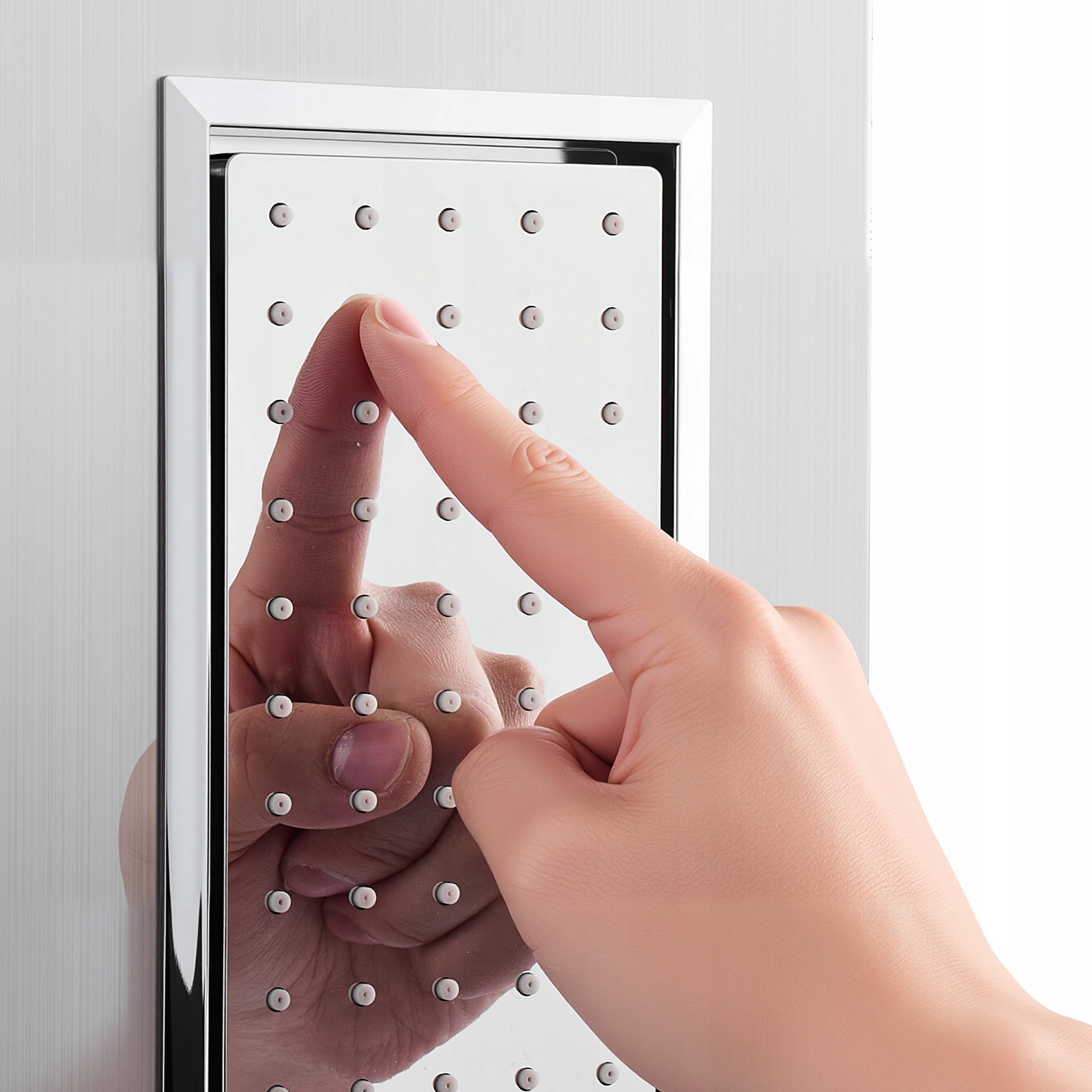 Матеріал: нержавіюча сталь 304: ця система дощового масажу під високим тиском виготовлена з потовщеної нержавіючої сталі 304 і стійка до відбитків пальців, іржі та корозії, забезпечуючи тривалу красу та гігієну