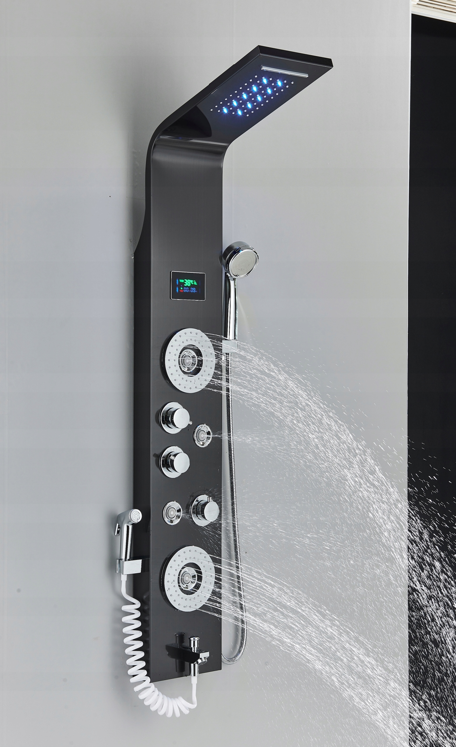 Наша душова панель забезпечує безпрецедентні враження від купання завдяки гідромасажним струменям і верхній і нижній вилив