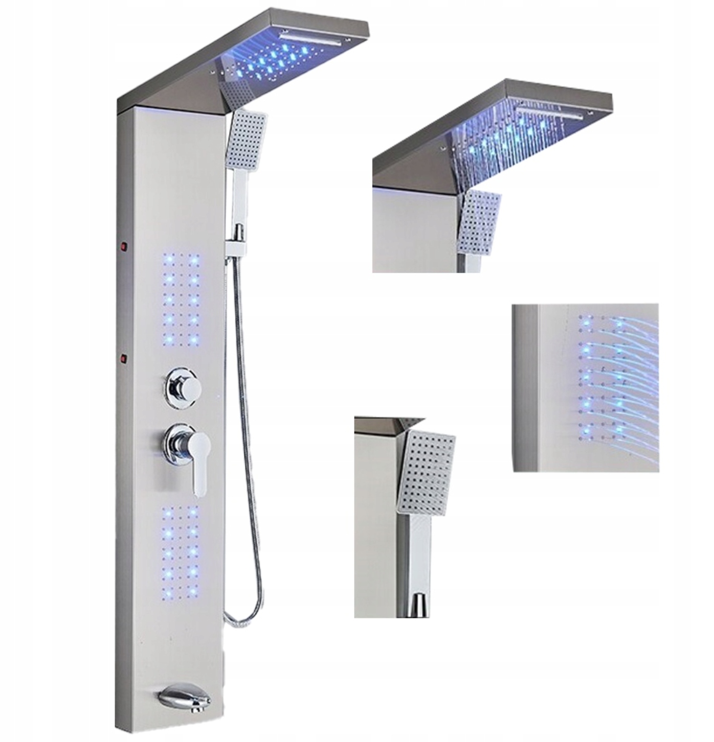 Світлодіодна душова панель з тропічним душем, гідромасажними форсунками та багатофункціональною душовою ручкою