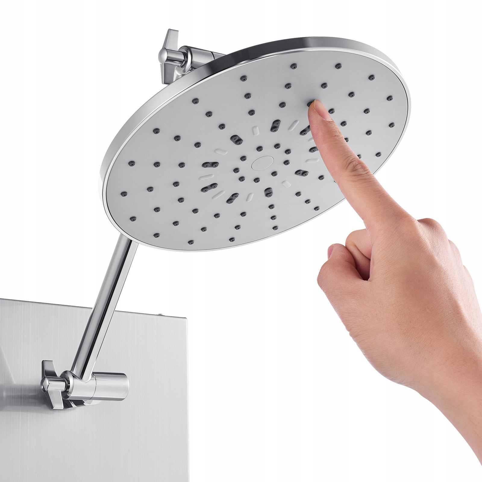 Регульований кут розбризкування: верхню лійку тропічного душу можна гнучко обертати; напрям маленьких масажних струменів можна регулювати поворотом. Відрегулюйте кут нахилу душу відповідно до свого зросту та уподобань під душем, щоб покращити враження від прийняття душу.