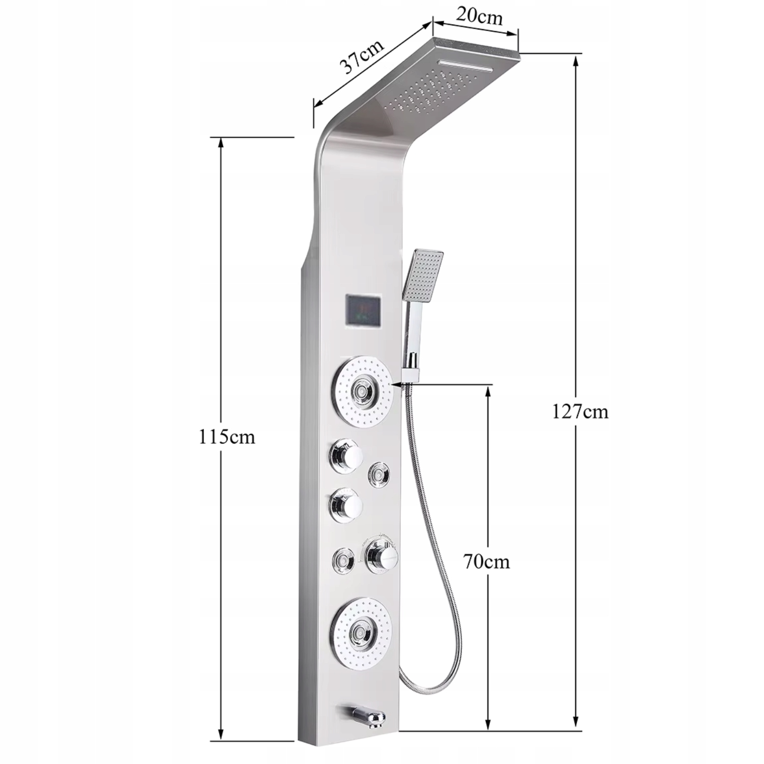 Функція водоспаду в душовій панелі є унікальним елементом, який створює розслаблюючу атмосферу, натхненну природою, у вашу щоденну ванну. Водний потік витікає широким, плавним потоком, імітуючи природний водоспад, що дозволяє відпочити тілом і душею. Це рішення не тільки заспокоює шкіру, але й візуально збагачує простір ванної кімнати, надаючи їй сучасний та елегантний характер. Душова панель із функцією водоспаду створює у вашому домі атмосферу розкішного SPA, забезпечуючи повне розслаблення та унікальні враження від купання.
