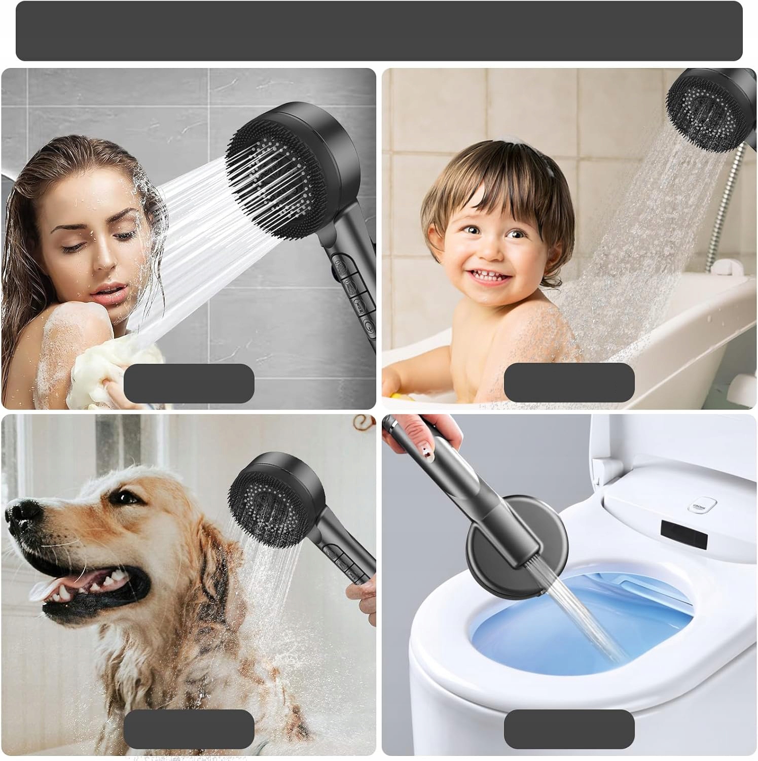 🚿🚿4-Mode Massage Flow:Дизайн для економії води та збільшення тиску підходить для дорослих, дітей і домашніх тварин, удома, спа, готелі, тренажерному залі та інших місцях купання. Силіконовий масаж знімає втому.