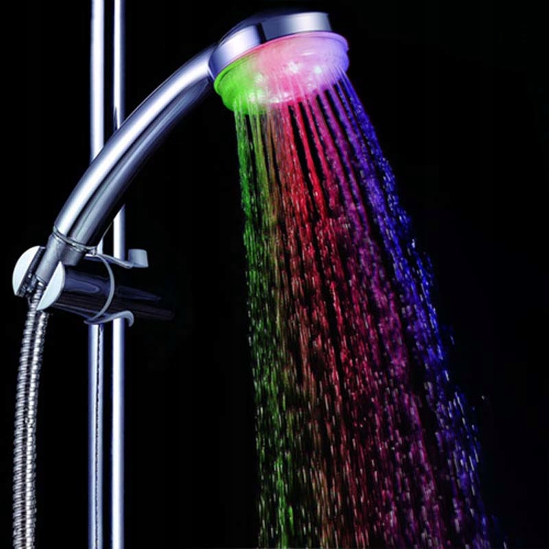 Фантастична душова лійка, яка світиться трьома кольорами завдяки вбудованим світлодіодам, які реагують на потік води.