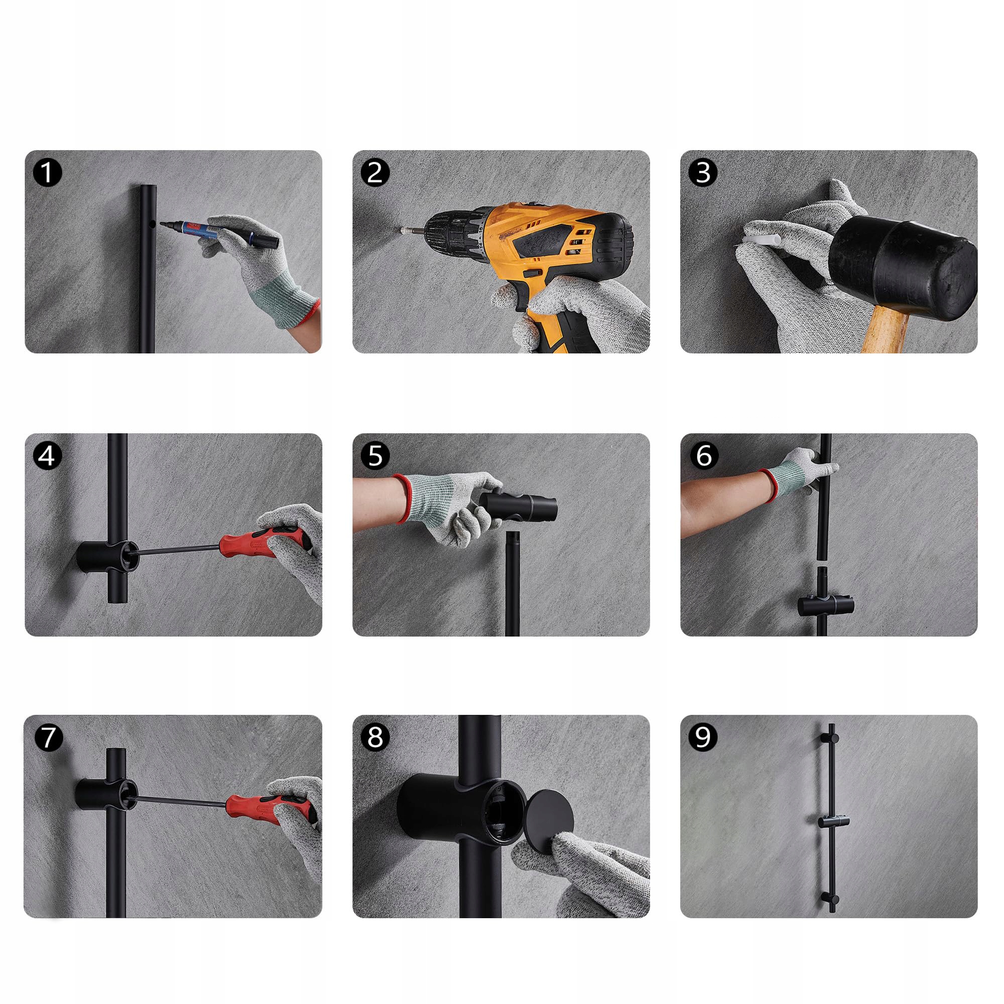 🚿【Змінне кріплення】Настінні кронштейни рухливі, що дозволяє працювати з наявними отворами при встановленні душової штанги, кожен настінний кронштейн можна прикріпити до стіни за допомогою 2 гвинтів. Отвори на настінному тримачі горизонтальні.