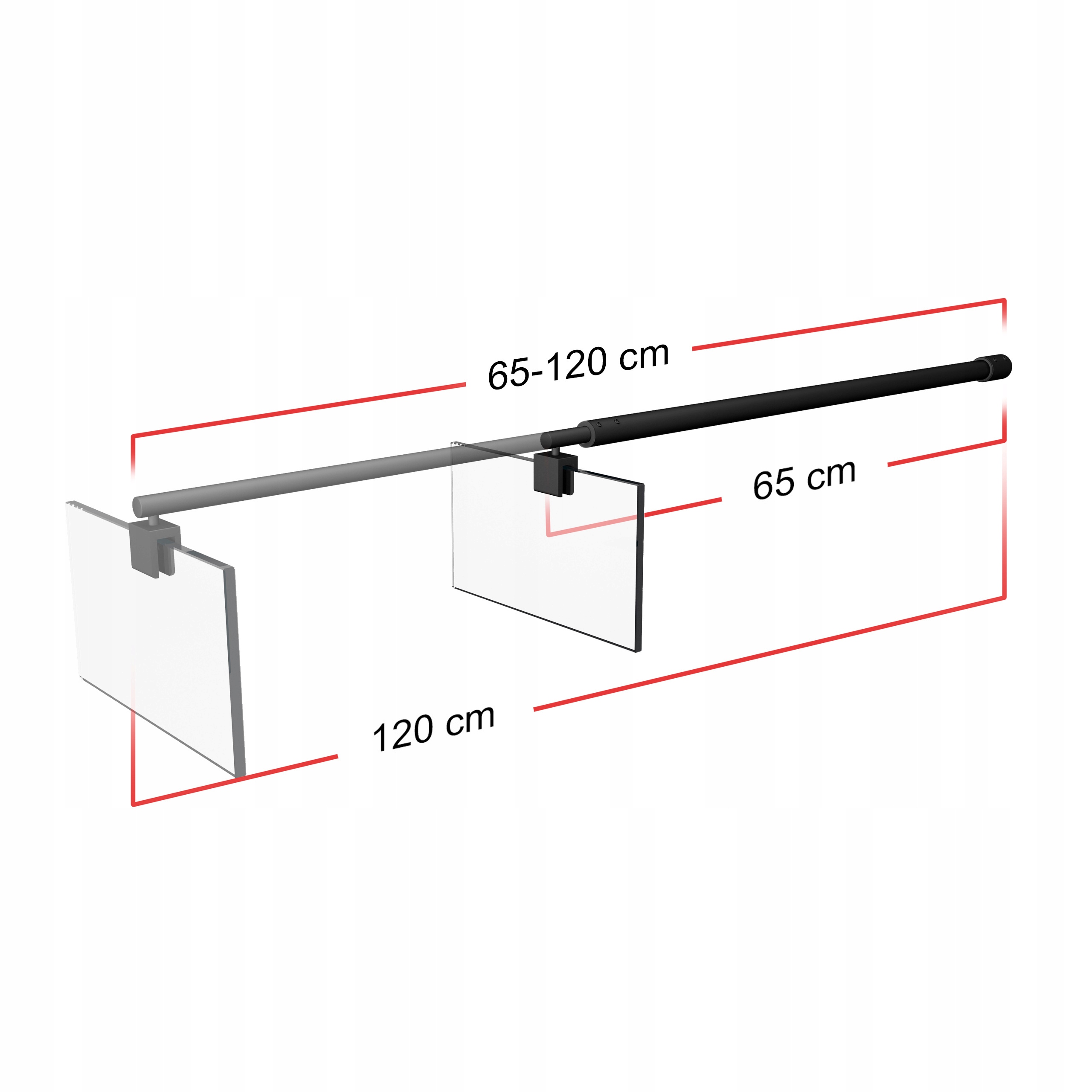 Стіна має стабілізуючу планку з регульованою довжиною в діапазоні↔ 65-120 см, що дозволяє кріпити стіну до протилежної стіни в безпечні та стійкі стіни. Ширину монтажної ніші (душового піддону) можна регулювати шляхом розкладання або складання штанги. Стрижню можна легко вкоротити або подовжити, щоб пристосувати її довжину до ніші або душового піддону без необхідності її різати❗️.