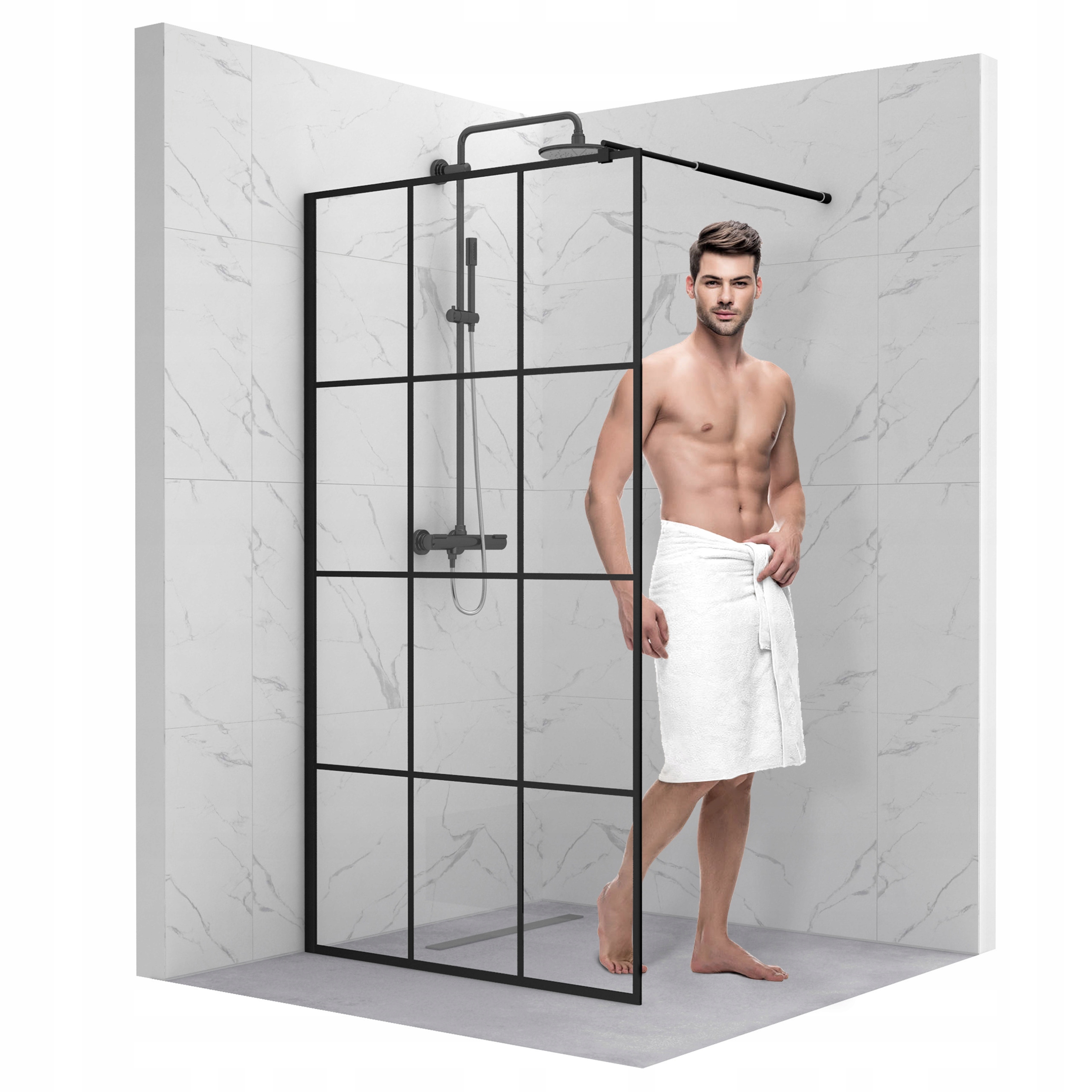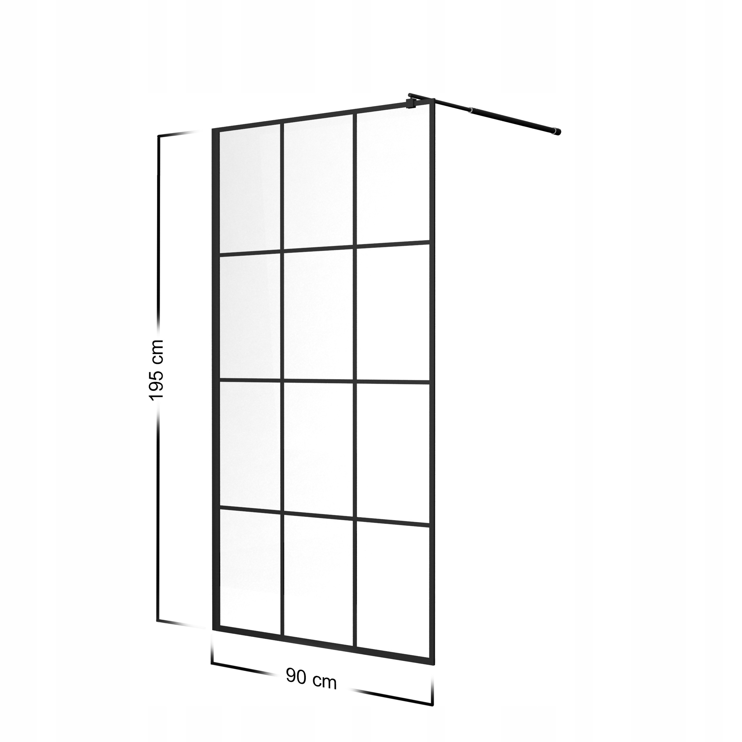 ДУШОВА СКЛЯНА СТІНА 90 СМ ЧОРНА ДВЕРІ КАБІНА СКЛО 8ММ ЛОФТ