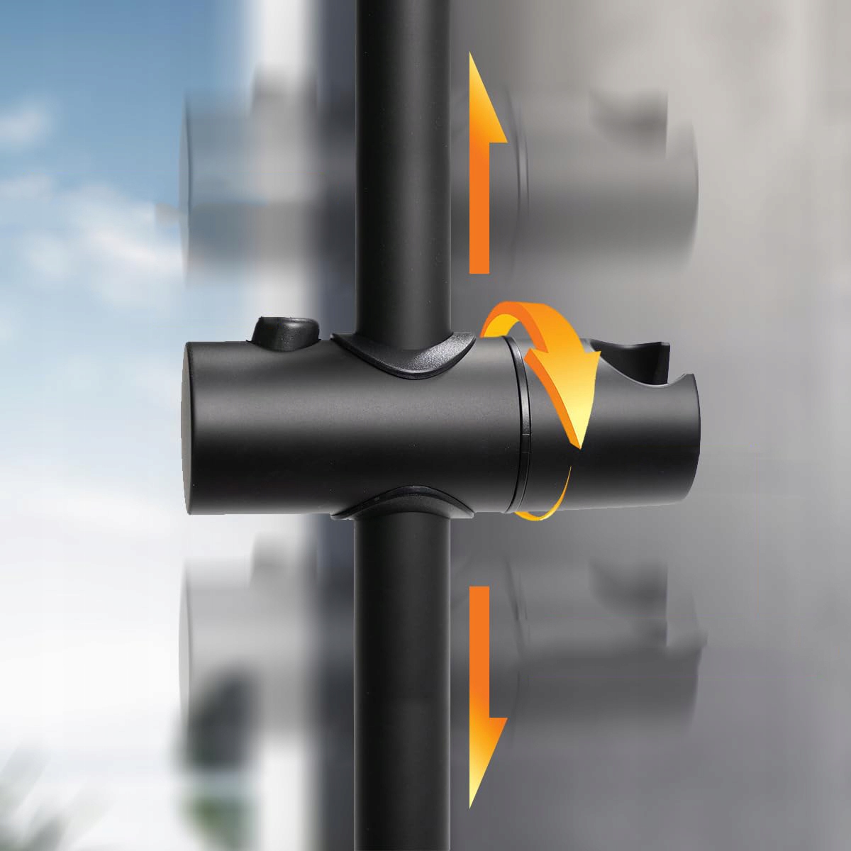 🚿【Багатофункціональний тримач для душу】Регульований по висоті тримач для душу зроблений високоякісного, стійкого до корозії та не іржавіє. Поворотний тримач дозволяє легко та плавно регулювати висоту та кут душової лійки. Ідеально підходить для більшості душових лійок, доступних на ринку.