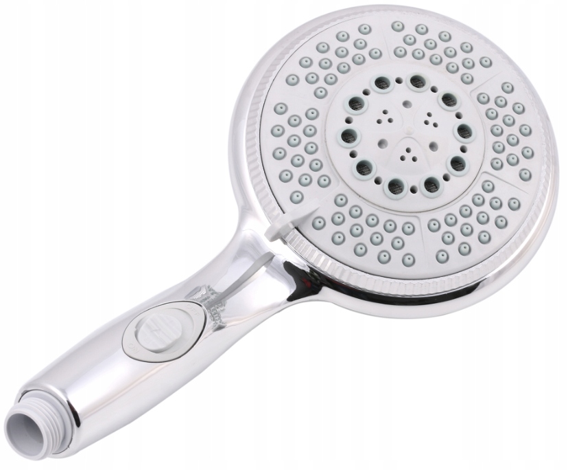 Продукт, який ми пропонуємо, - це п'ятифункціональна душова лійка з додатковою функцією Start-Stop. Виготовлена з міцного і міцного пластику, який кілька разів покритий полірованим хромом. Великою перевагою пропонованого продукту є силіконові насадки, які запобігають накопиченню вапняного нальоту та полегшують очищення. Душова ручка виготовлена з увагою до кожної деталі.