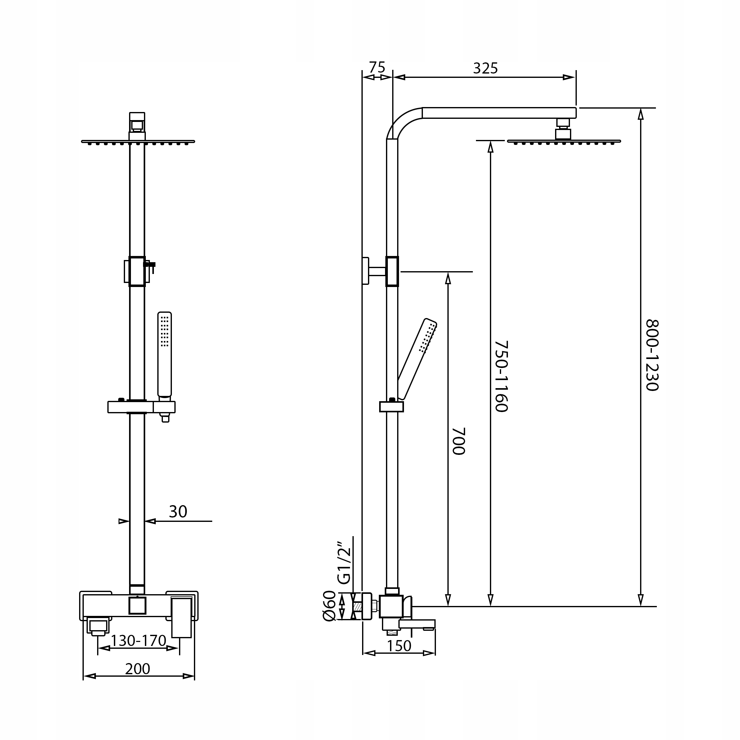 - Регульований ручний душ
