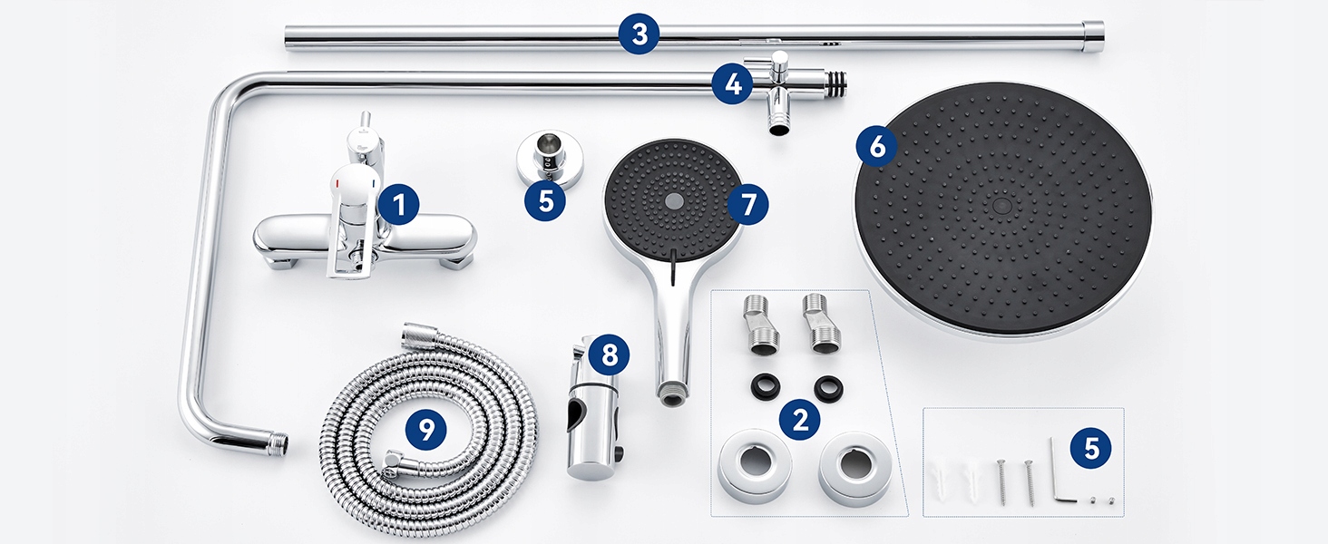 ❖ Кругла душова штанга з нержавіючої сталі може регулювати висоту (діапазон 8-43 см) після встановлення.